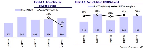 * Ellenbarrie (ELLEN) delivered a muted performance in 2QFY26 as EBITDA declined 8% YoY to INR335m. YoY growth was impacted by a one-time revenue of INR150m from Project Engineering in 2QFY25.