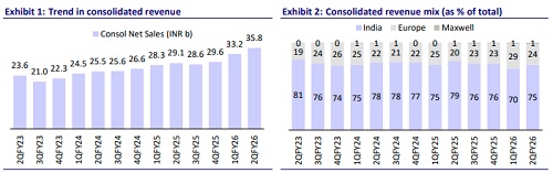 * Consolidated PAT grew 12% YoY to INR2.3b (below estimates of INR2.5b). PAT came below expectations due to lower-than-expected other income, higher depreciation, and a higher tax rate in 2Q. PAT growth in 2Q was supported largely by inorganic growth (Europe PAT growth at 52.2% YoY). On the other hand, while standalone PAT grew 1.5% YoY to INR1.9b, Maxwell reported a reduced loss at INR9.5m vs a loss of INR44m in 2QFY25.