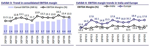 * It has so far invested INR4.6b in capex in 1H, and its FY26 guidance stands at INR8b for new projects. For Europe, the company has targeted capex of EUR30- 32m (having invested EUR in 1H) for FY26.