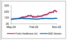 Fortis Healthcare reported revenue of Rs 2,331 Cr, which is in line with our expectations and supported by higher ARPOB and stabilised occupancy levels. ARPOB stood at Rs 68,800, up 5.9% YoY, while occupancy was stable at 71%, driven by a 13% YoY growth in occupied bed days. The Hospital segment’s reported revenue and EBITDA margins stood at Rs 1,974 Cr and 22.9% with 27.3% EBITDA growth over the year. The rebranded Agilus Diagnostics reported revenue of Rs 358 Cr, growth of 7% YoY, and an EBITDA of Rs 104 Cr, reflecting a 29.1% margin, up 510 bps YoY. The margin improvement reflects operational recovery and efficiency gains as the business continues to scale postrebranding.