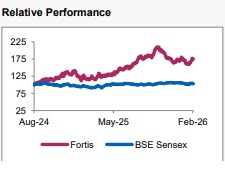 For Q3FY26, Fortis Healthcare delivered strong YoY growth, with consolidated revenue rising 17.5% to Rs 2,265 Cr, driven by 19.4% growth in hospital revenue (Rs 1,938 Cr) and 7.3% growth in diagnostics net revenue (Rs 327 Cr). Consolidated operating EBITDA increased 34.8% YoY to Rs 505 Cr, with margins expanding 290 bps to 22.3%, reflecting operating leverage and improved mix. PBT (before exceptional items) grew 21.9% to Rs 312 Cr, while reported PAT stood at Rs 197 Cr, impacted by a Rs 55 Cr one-off exceptional loss related to new labour codes.