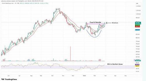 Indian Fortis Healthcare Ltd CMP 947.00 Buy Price 947.00 Target 1025.00 Stop loss 902.00 Holding Periond 1 Month