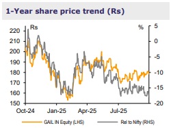 GAIL posted Q2FY26 standalone EBITDA of Rs31.9bn, a 6% miss, due to weak transmission, petchem, and LPG. PAT at Rs22.2bn saw a 5% beat, largely due to 41% higher-than-estimated other income. The reported transmission EBITDA saw an 18% miss, while gas cost affected petchem; realizations fell for LPG. Marketing was 18% better than expected. The management further lowered its FY26 pipeline volume guidance to 123-124mmscmd after a weak H1; however, it expects to see 8-10mmscmd growth in FY27. The management reiterated its FY26 marketing PBT guidance at Rs40-45bn, with potential upside. Petchem earnings were impacted by higher gas cost; the near-term outlook remains weak as HH prices are high. The integrated network tariff hike is expected at any time. We cut FY26E EPS by 10%, factoring in lower pipeline volumes and delayed tariff hike, while largely retaining our FY27-28E earnings. We roll forward to Sep-27E, with our blended target EV/EBITDA multiple down to 6.8x, from 7.0x, on changes in segment earnings. We retain BUY and maintain our TP of Rs210 despite the rollover to Sep-26E