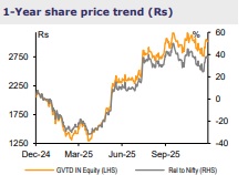 GVTD has won a contract for design and establishment of a 2,500MW, ± 500kV high voltage direct current (HVDC) VSC terminal station (2 x 1,250MW) for evacuation of renewable power from KPS 3 (Khavda) to South Olpad. While the order value has not been disclosed, we believe it is in the ~Rs75-80bn range, to be executed over the next 4-5 years. Recently, the company had reported another large order-win (worth Rs12.3bn) from PGCIL, for refurbishment of 2x 500MW HVDC Chandrapur back-to-back link between northern and southern India. Both orders, coupled with the existing strong order book of Rs131bn, further strengthens the company’s long-term revenue visibility. GVTD has also announced capex of ~Rs10bn—which is Rs8bn(fresh) + Rs2.5bn—citing large domestic and export opportunities. The company is well placed to benefit from the current energy transition drive due to its strong product portfolio and localization. We maintain BUY on GVTD with TP of Rs3,350 (55x Sep-27E EPS).