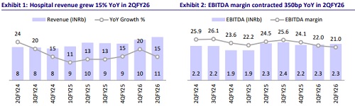 * Global Health (Medanta) delivered better-than-expected revenue (9% beat) in 2QFY26. However, it delivered marginally lower-than-expected EBITDA/PAT (3%/2% miss) for the quarter.