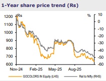 We retain BUY on Go Fashion, while cutting our TP by ~14% to Rs775, on account of a ~10% cut in the TP multiple and ~4% cut in earnings. Despite the significant TP cut, our BUY is led by early signs of demand revival during festive, GO’s confidence on SSG revival with new product launches in H2, heavy stock price correction (~35% YTD; ~16x FY28 EBITDA), and commitment on ~50% pledge reduction in the next few months. The Q2 performance was weak, with 7% topline growth (EBO SSG: -3.6%) and muted EBITDA/PAT growth (preIndAS). Given weak macros, GO has reduced its store outlook to 80-90 net additions in FY26 (vs earlier outlook of 120-130 additions), though GO maintained that expansion headroom remains robust and expansion shall accelerate on demand revival. While higher primary sales to LFS partners has led to 15 days increase in WC (YoY), the balance sheet remains healthy with net cash of Rs2.6bn (vs ~Rs2.3bn at FY25-end). The initial traction in international foray and daily concept stores (2 stores in Chennai) has been encouraging, with incremental monthly throughput of Rs1,000/sqft/month.