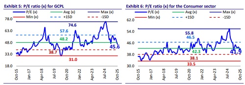 * The Indian business is witnessing a gradual recovery, with a steady 1H performance reinforcing confidence in an improving trajectory toward accelerated volume growth. With easing palm oil prices, the company is well-positioned for margin recovery in 2HFY26, supporting overall profitability. This combination of volume traction and margin tailwinds strengthens earnings visibility. We model 10%/12% revenue and EBITDA CAGR for FY25-28E. The company is expanding its TAM by foraying into new, faster-growing categories and continues to strengthen its core portfolio. Given the growth-centric focus, we remain constructive on GCPL and reiterate our BUY rating with a TP of INR1,400 (based on 50x Sep’27E EPS).