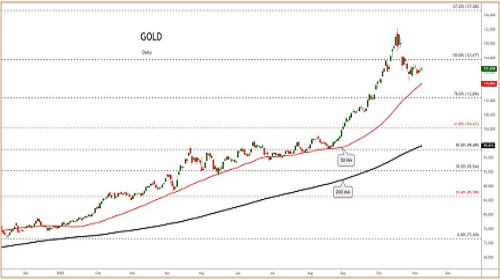 Gold prices rose buoyed by expectations of another Fed interest rate cut in December.