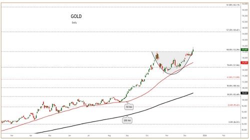 Gold gains supported by expectations of more interest rate cuts next year after Fed pushed back against hawkish market bets.