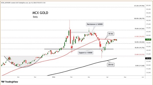 Gold trading range for the day is 152145-155245.