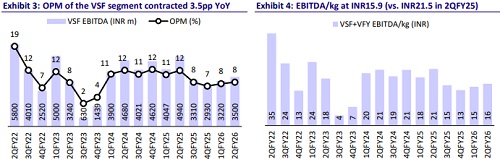 VSF margin dips 3.5pp YoY; chemical margin expands 1.9pp YoY