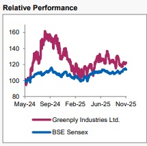 Company Outlook & Guidance: Management expects business performance to improve in H2FY26. Demand for plywood should rise as housing activity picks up and the new BIS rules continue to support organised players. The company is targeting more than 10% growth in plywood volumes and margins close to 10% in the coming quarters. The MDF business is also expected to do better with full use of the 1,000 CBM per day capacity, helping margins move above 16% in the second half and around 14.5–15% for the full year. Greenply also plans to improve working capital and reduce debt through better collections and inventory management. Overall, it expects stronger margins, higher cash flows, and better profitability in the second half of FY26.