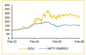 Overhang of EV penetration: GOLI has raised its stake in EV charger manufacturer Tirex, from 51% to 65% through an investment of INR 380 Mn, reinforcing its strategic entry into the EV supply chain. Around 25% of electric buses are currently charged using GOLI’s Tirex chargers. We estimate this optionality could scale up to INR 3–4 Bn revenue, adding ~10% to the topline in the next few years with an EBITDA margin of 12–14%.