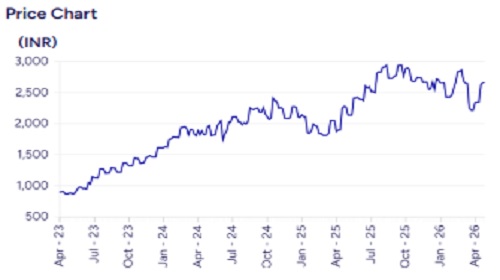 HDFCAMC saw a soft quarter as core income at INR 8.4bn was 2.3% lower to PLe due to miss on revenue. Management attributed this to lesser days in Q4FY26 (90 days) vs Q3FY26 (92 days). Company suggested that GST impact as per new TER directives may be 3-4 bps which could be passed to distributors. Led by strong equity performance in 3-yr bucket, market share in net flows remains 2nd highest; it was 15% in FY26. Hence stock equity market share increased by 6bps QoQ to 13% in Q4FY26. HDFCAMC could better navigate impact of new TER guidelines due to its pedigree; we have factored a decline of 1bp each in equity yields over FY26-28E. We tweak multiple to 36x on Mar’28 core EPS but maintain TP at INR 3,000. Retain ‘BUY’.