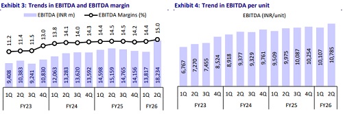 * EBITDA margins were up 50bp YoY at 15% (in line) on account of better operational efficiencies and improved volumes.