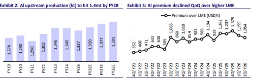 * The company expects aluminium production and shipments to remain steady or slightly higher in 2HFY26, supported by the ramp-up of downstream capacity and stable operations across smelters.
