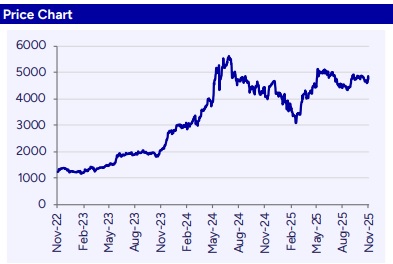 Hindustan Aeronautics (HAL) delivered a 10.9% YoY revenue growth, likely supported by improved execution, though EBITDA margin contracted by 394bps YoY owing to higher provisions. The company further reinforced its leadership in India’s defence and aerospace ecosystem by securing the long-awaited order for 97 LCA Tejas Mk1A aircraft valued at ~Rs620bn, alongside a $1.0bn contract with GE Aerospace for 113 F404-IN20 engines to power these jets. During the quarter, HAL’s Nashik division achieved a major milestone with the maiden flight of its first Tejas Mk1A. On the strategic front, HAL is leading a consortium bidding for the AMCA program, which, if awarded, could be a transformative opportunity for the next decade. Additionally, the company entered the passenger aircraft manufacturing segment through an MoU with Russia’s UAC to produce the Sukhoi Superjet 100 (SJ-100) domestically, marking a significant diversification into civil aviation. However, the pace of F404 engine deliveries from GE remains a concern, with HAL receiving only four out of twelve engines committed for the year. The stock is currently trading at a P/E of 34.4x/31.3x on FY27/28E earnings. We maintain ‘Buy’ rating and roll forward to Sep’27E valuing the stock at a PE of 38x Sep’27E (40x Mar’27E earlier) arriving at a TP of Rs5,507 (Rs5,500 earlier).