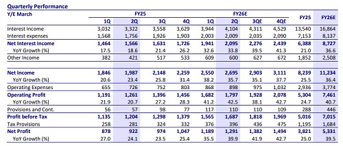 * Margin is projected to expand ~10bp QoQ in 2QFY26.