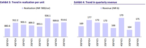 * In 1HFY26, revenue fell 2.1% to INR346b, whereas EBITDA/PAT grew 1.5%/2.7% YoY to INR45b/INR29b. In 2HFY26, we expect revenue/ EBITDA/PAT to grow 9%/11.5%/10% YoY to INR377b/INR49b/INR30.4b.