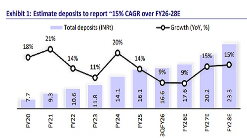 Liability franchise robust; estimate ~15% deposit CAGR over FY26-28E