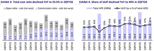 * On a premium basis, persistency declined in 2QFY26, with 13th month persistency at 82.4% (86.4% in 2QFY25) and 61st month persistency at 59.4% (63.1% in 2QFY26).