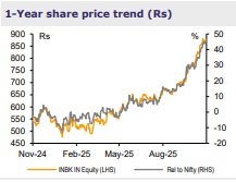 Indian Bank (INBK) continues to rank among the best performing PSBs, and our recent interaction with the MD and CEO, Binod Kumar reaffirms the bank’s firm focus on delivering sustainably higher profitability over growth. The bank clocked strong ~14% credit growth in 2Q; however, it conservatively guided for 10–12% credit growth, with a positive bias, subject to no compromise on margins. The bank also plans to ramp up its otherwise weak non-fund business growth to drive up fees. NIM shall moderate a tad in Q3, due to bunching-up of MCLR pricing in 3Q, while inching up a bit in 4Q, subject to no rate cut. ECL impact on CAR could be ~150bps, however, the bank has proactively started making provisions to limit the transitional impact on 1-Apr-27. The bank believes that better operating leverage (mainly non-staff cost) and focus on fees should partly offset the eventual moderation in AUCA recovery and ECL provisions, to help sustain RoA>1-1.1%. We remain positive on Indian Bank, backed by its superior return profile and credible management, and retain BUY with a recently raised target price of Rs900 (1.3x Sep-27E ABV). We, however, remain watchful of the evolving developments around PSBs’ consolidation, currently under discussion at the ministry level, in which Indian Bank could potentially be involved.