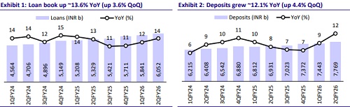 * INBK reported 2QFY26 PAT of INR30.2b (up 11.5% YoY/1.5% QoQ), aided by steady NII and lower-than-expected provisions.
