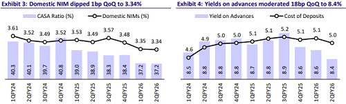 * Opex grew 8.1% YoY (up 4.3% QoQ, largely in line). As a result, C/I ratio inched up to 46.5% from 45.8% in 1QFY26. PPoP grew ~2.3% YoY (up 1.4% QoQ) to INR48.4b (in line).