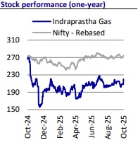* As per media reports and our channel checks, tax rates on gas sourced from Gujarat (and sold outside the state) have been revised. The earlier value-added tax (VAT) of 15% has been replaced with a 2% central sales tax (CST), effective 1st Oct’25. However, an official confirmation about this is yet to be received, and we are not factoring in any potential benefits in our current estimates.