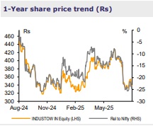 The company has net cash of Rs24.6bn on its books, and refrained from returning capital to the shareholders this year despite strong cash flows. The company can lever up its balance sheet to optimize the capital structure. However, we believe that the Street will take this capital allocation negatively, considering the challenges of working in Africa. This is also reflected in the multiples of African tower companies Helios Towers and IHS Holdings, which trade at CY26E EV/EBITDA of 7.0x and 6.0, respectively, compared to 12-15x for global peers. Indus Towers’s low valuations are due to the overhang of longterm viability of Vodafone Idea, which is one of its key customers. In case of large capital allocation toward the Africa business, we see the risk of further correction in valuations. In the absence of more details on the foray, we maintain BUY on the stock with target price of Rs410, valuing the company at 6.5x Q1FY28E EV/EBITDA.