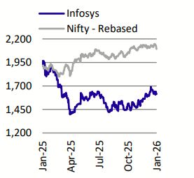 * Valuation and View: INFO is well placed to benefit from enterprise-wide AI spending, given its discretionary-heavy mix. At the current valuations, upside risks meaningfully outweigh downside risks. We value INFO at 26x FY28E EPS with a TP of INR2,150, implying a 33% upside potential. INFO remains our top pick among tier-1 IT names and we reiterate our BUY rating on the stock.