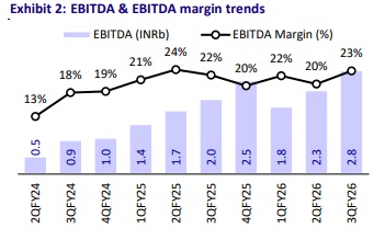 ? The company has guided for EBITDA margins of 20–22% in FY26, with a similar margin range expected to be sustained into FY27. ? For FY27, management is targeting approximately 75% growth in consolidated revenue.
