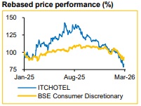 View and Valuation: We initiate coverage on ITCHOTEL with a ‘BUY’ rating and a target price of INR 190, based on FY28E EV/Adj. Hospitality EBITDA of 20x, implying an upside of 28.9%. Driven by premium portfolio positioning, rising contribution from asset-light managed hotels and a visible pipeline, we expect Hospitality Revenue / Adj. hospitality EBITDA / PAT to expand at CAGRs of 11.1% / 13.7% / 16.3% respectively, over FY26E–29E. Rising managed mix and heightened operating leverage from maturing assets is likely to support margin expansion and compounding of sustained earnings.