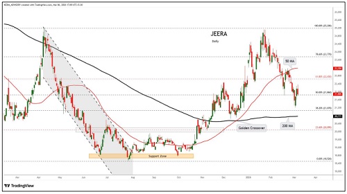 Jeera trading range for the day is 21460-22560.