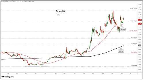 Dhaniya trading range for the day is 11202-11914.