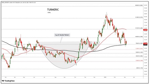 Turmeric trading range for the day is 14262-15342.