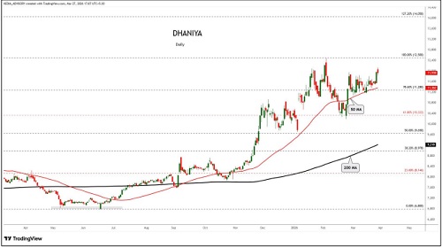 Dhaniya trading range for the day is 11854-12714.