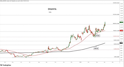 Dhaniya trading range for the day is 12618-13986.