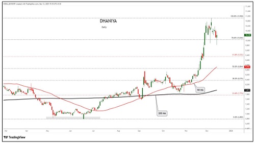 Dhaniya dropped on profit booking after prices seen supported as Dhaniya sowing seen at 102,947 hectares down by 0.80%.