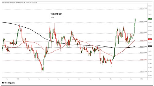 Turmeric gains as arrivals remain below normal and good domestic and International demand.