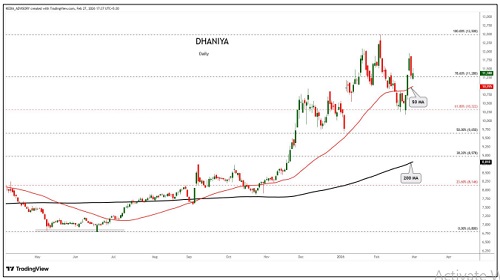 Dhaniya trading range for the day is 10908-11636.
