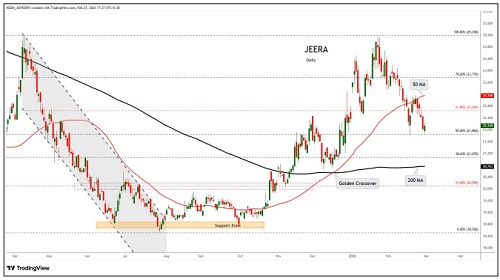 Jeera trading range for the day is 20870-22430.