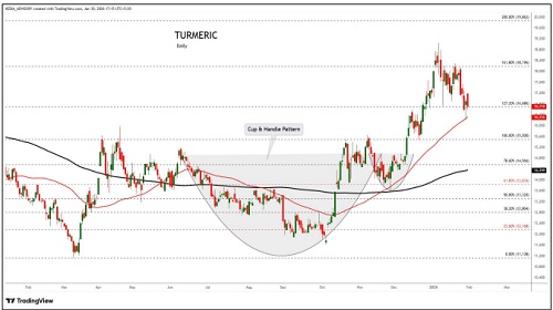 Turmeric trading range for the day is 16514-16958.