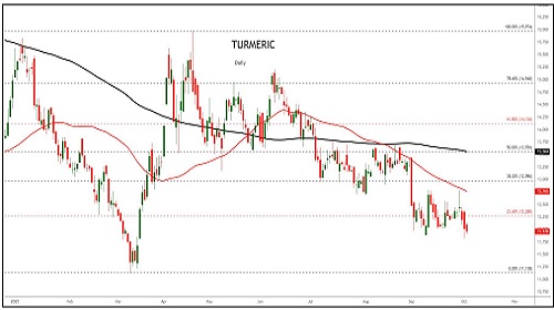 Turmeric gains as recent rainfall has caused damage to standing turmeric crops in major growing regions.