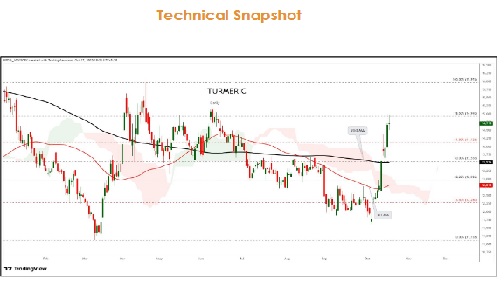 Turmeric trading range for the day is 15046-15646.