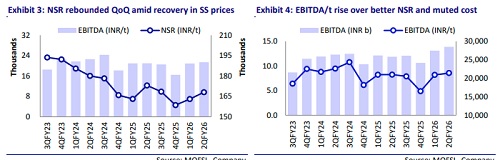 * The exports share remained steady at 9% in 2QFY26 compared to 1QFY26 (vs. 10% in 2QFY25). ASP stood at INR168,000/t (-3% YoY and +3% QoQ), led by SS price recovery during the quarter.