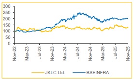 JKLC reported Q2FY26 revenue and EBITDA of INR 15,318 Mn (+24.1% YoY, -12.0% QoQ) and INR 2,081 Mn (+133.9% YoY, -33.1% QoQ). Total volume for Q2 stood at 2.8 Mnt, up 14.8% YoY and down 14.5% QoQ.
