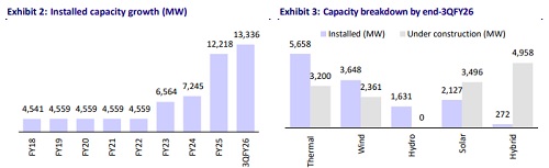* Lower merchant exposure to increase earnings visibility: Utkal (700MW thermal plant), which had 100% merchant exposure in FY26 and was impacted by weaker demand, will be largely contracted (400MW) from 1st April’26, reducing JSW’s overall merchant exposure to ~5% of operational capacity.