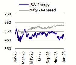 * JSWE has nearly doubled its operational installed capacity from 7.2GW in FY24 end to 13.2GW as of 2QFY26, underscoring strong execution capabilities. The reduction in merchant exposure to ~5% of the installed base significantly enhances its cash flow stability.