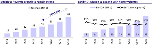 * With a balanced east-west coast presence and expanding inland logistics, JSWINFRA is well-placed to benefit from India’s push for multimodal integration and port-led industrial growth. We estimate volume/revenue/EBITDA/APAT CAGR of 15%/24%/26%/23% over FY25-28 and reiterate BUY with a TP of INR360 (based on 17x FY28 EV/EBITDA).